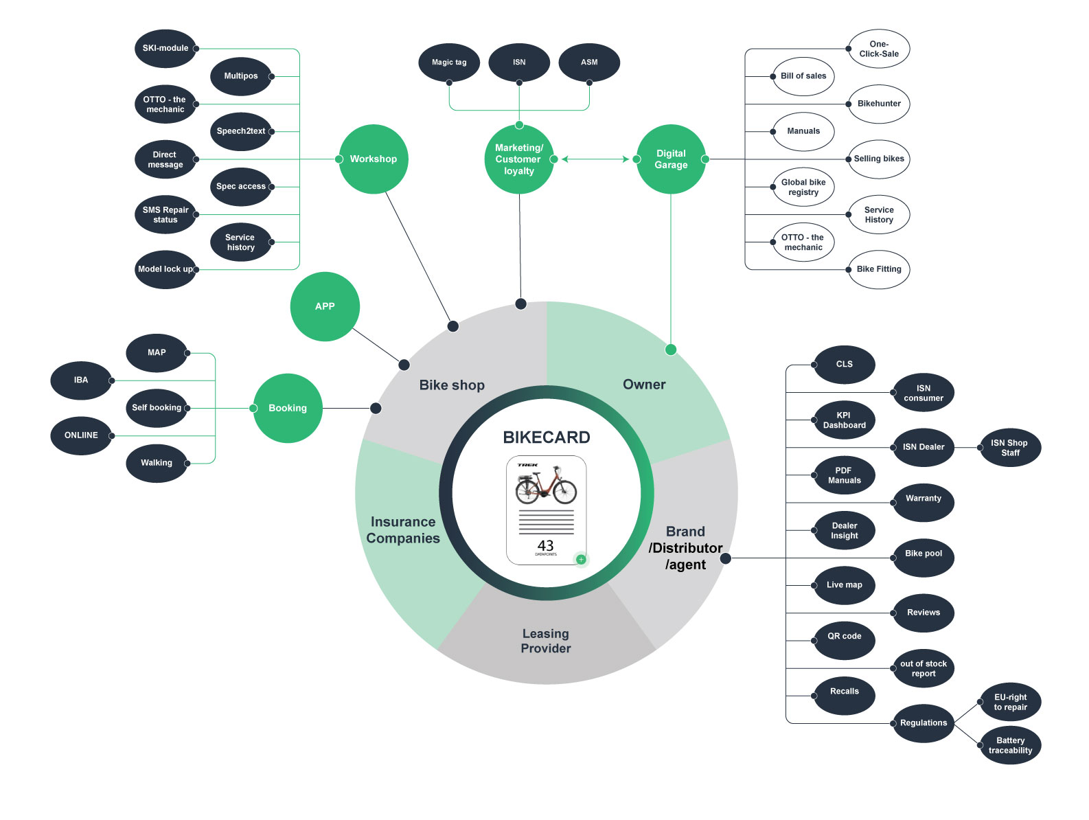 When a bicycle is sold on the second-hand market, the ownership transfer of the bike card takes just 5 seconds. Information about both the current and previous owners is accessible to the shop and the brand.