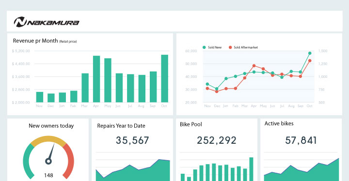 Brand can see what shops are repairing their bicycles. What the price is, how many bikes, what models, how many pr day, revenue +++. This data is available also when a dealer is not selling the brands bikes