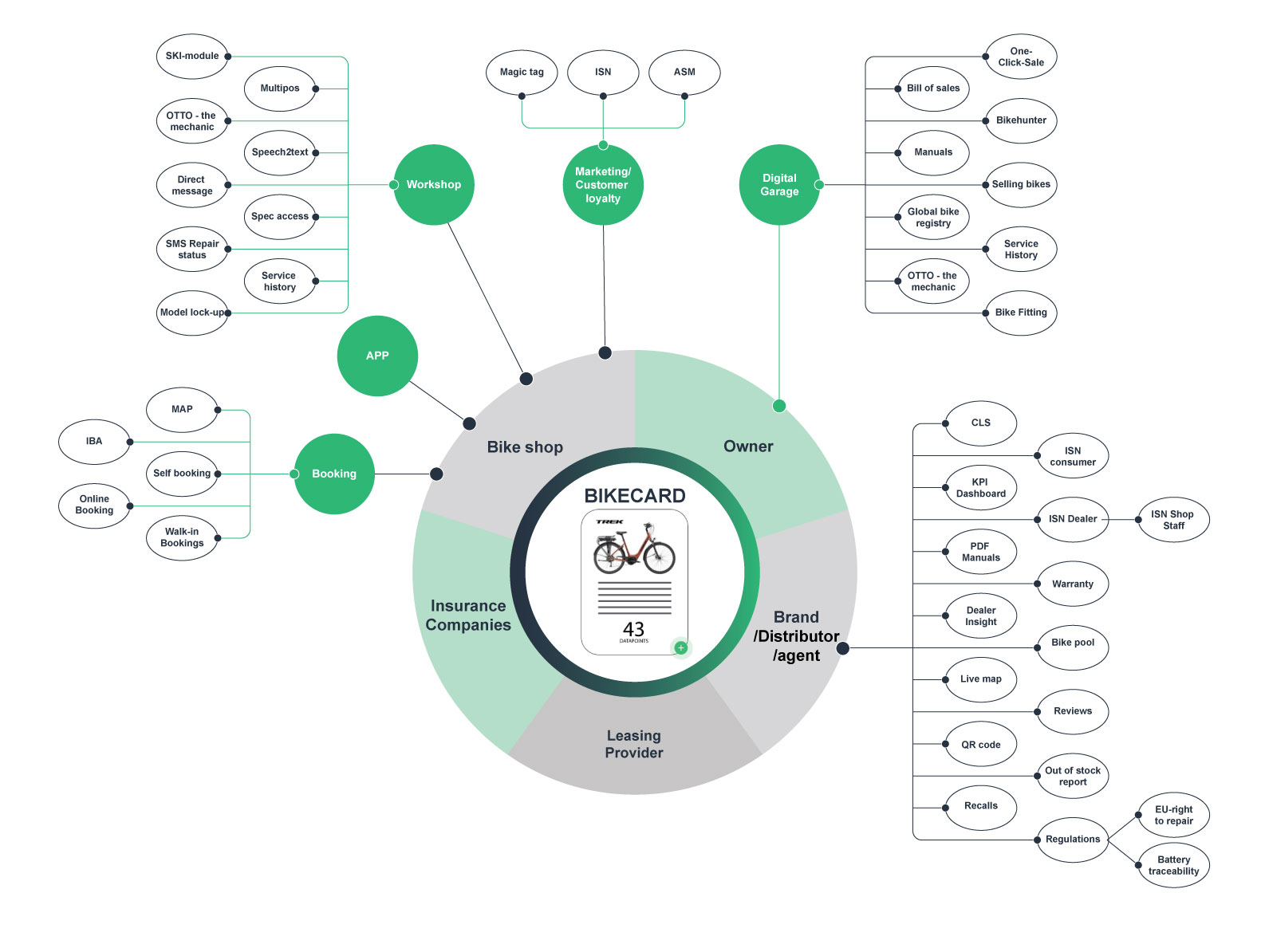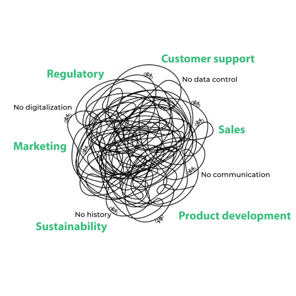 When a bicycle is sold on the second-hand market, the ownership transfer of the bike card takes just 5 seconds. Information about both the current and previous owners is accessible to the shop and the brand.